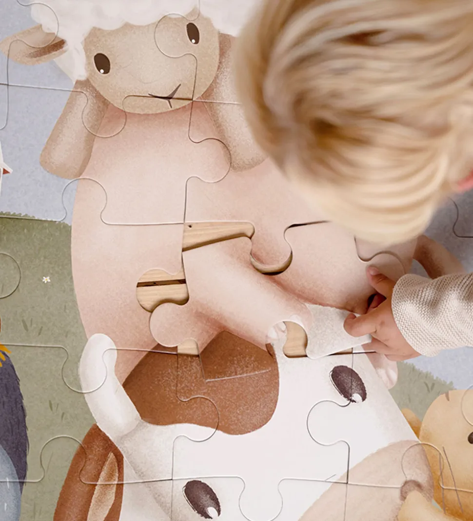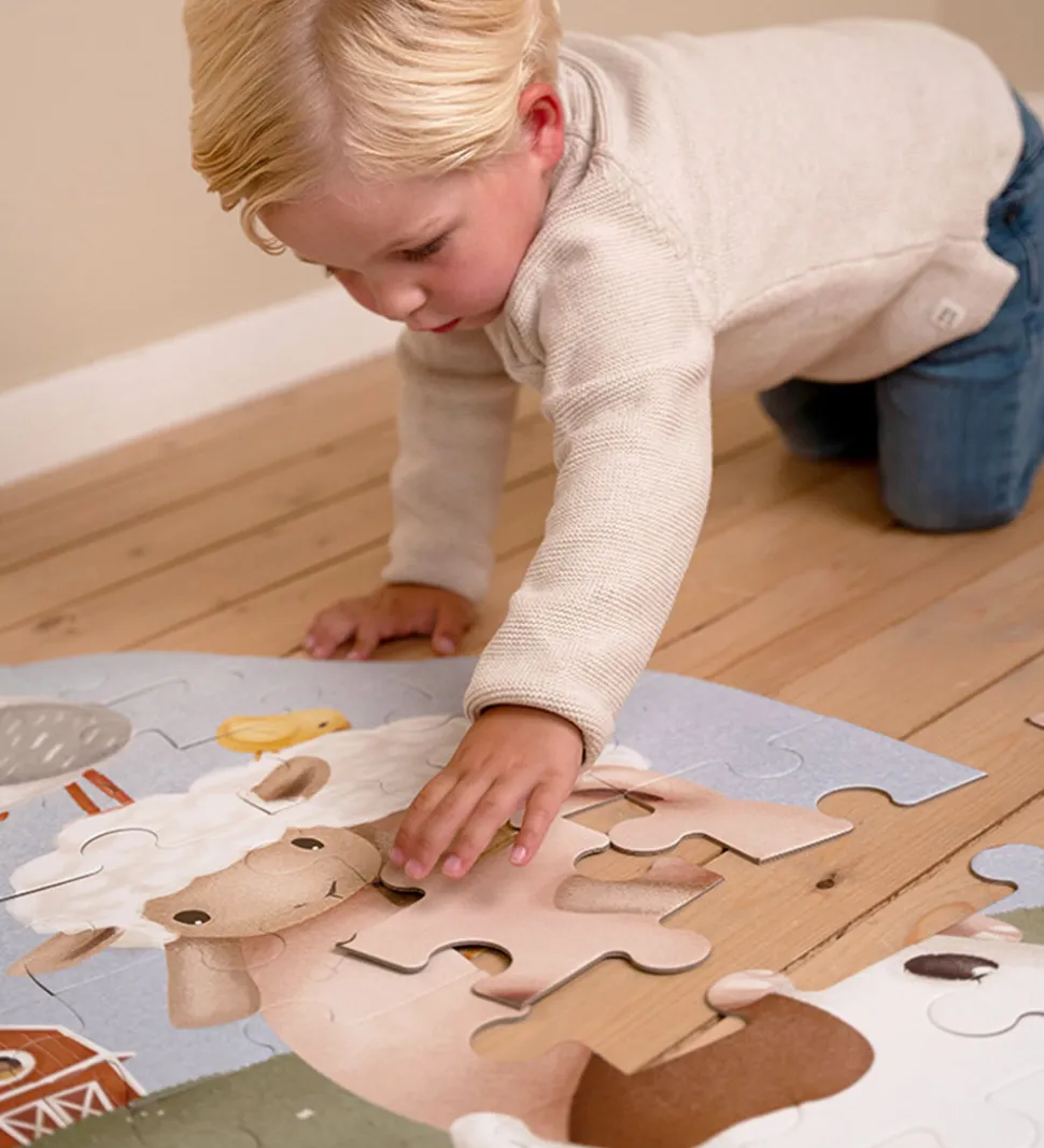 Little Dutch puslespillet er i en XL gulvpuslespilsudgave, som er sjovt for børn at kaste sig ud i. De rummer 42 store, kraftige brikker, der er i en god kvalitet.
