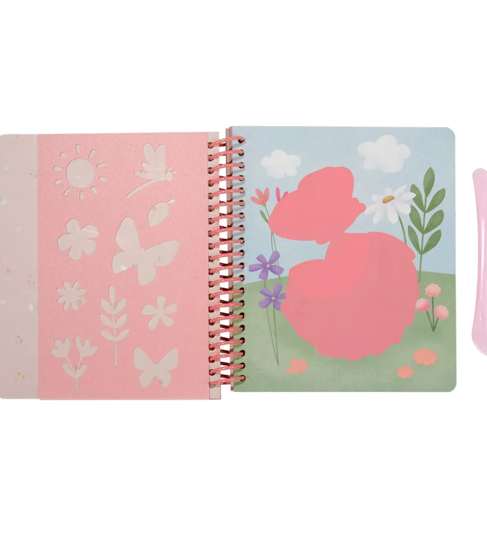 Little Dutch skrabebogen har spiralryg og kraftige sider med motiver, der skal skrabes med det medfølgende skrabeværktøj. Når skabelonerne er skrabet er illustrationerne komplette.