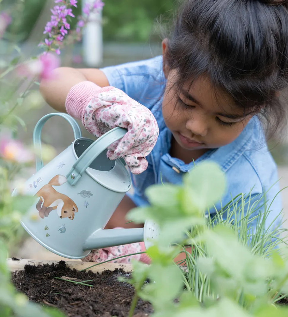 Fin vandkande fra Little Dutch i lyseblå med sødt print af dyr og naturmotiver. Vandkanden har to håndtag og er ideel til leg og udforskning i haven.