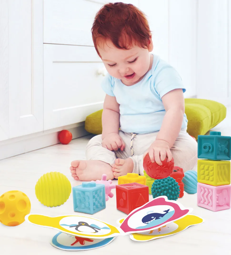 Farverigt Ludi aktivitetslegetøj med 15 former med forskellige teksturer. Ludi legetøjet stimulerer sanserne og er ideelt til udforskning med dets spændende farver og former.