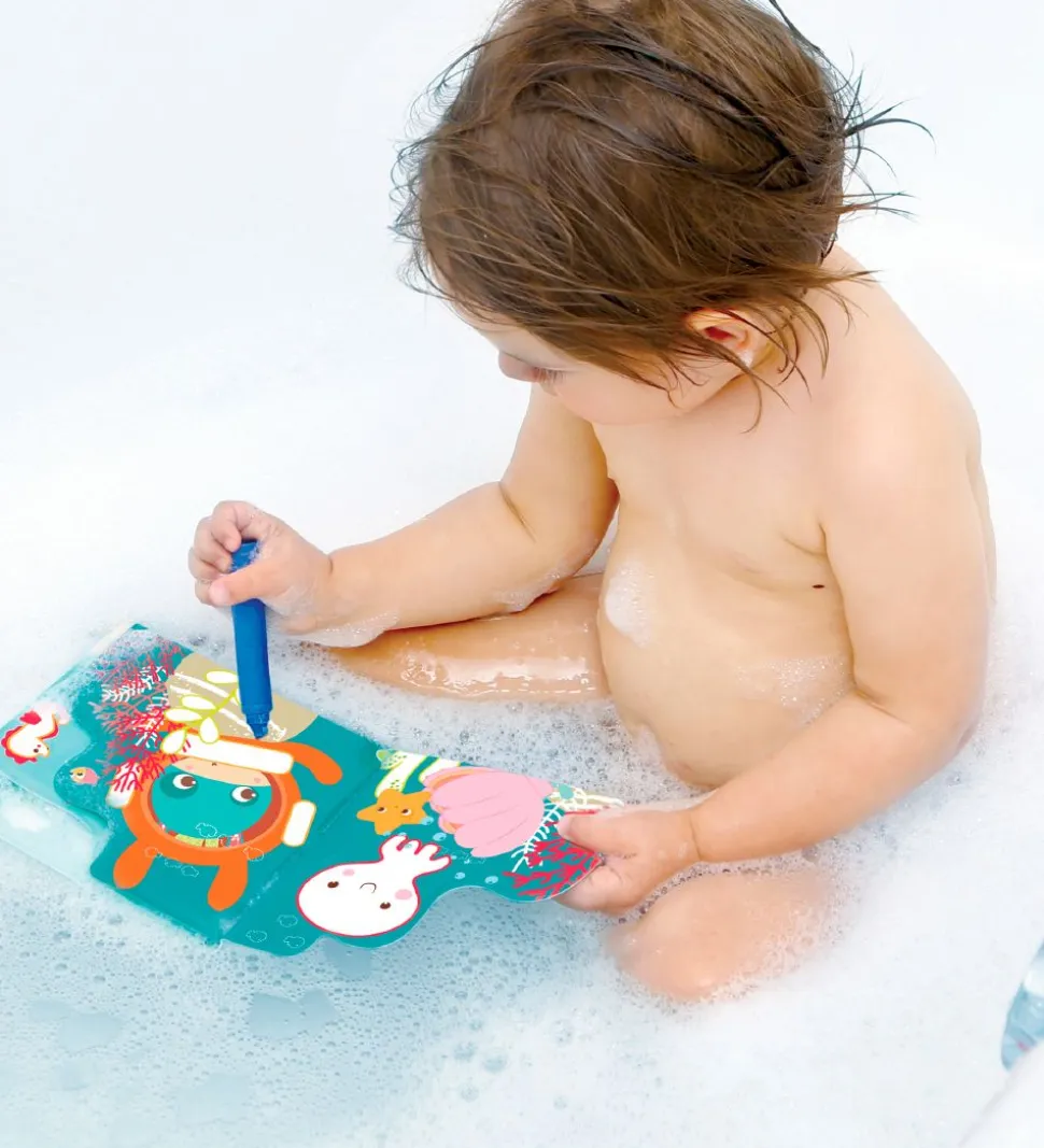 Ludi badelegetøjet består af en farvebog med otte sider, som de små kan farve på, og to farver i blå og rød. Når barnet er færdig med at tegne, eller bare vil starte forfra, skal farvebogen blot dyppes i vand, hvorefter det tegnede forsvinder. Farvebogen er perfekt til at gøre badet lidt sjovere, men kan naturligvis også bruges på stranden.
