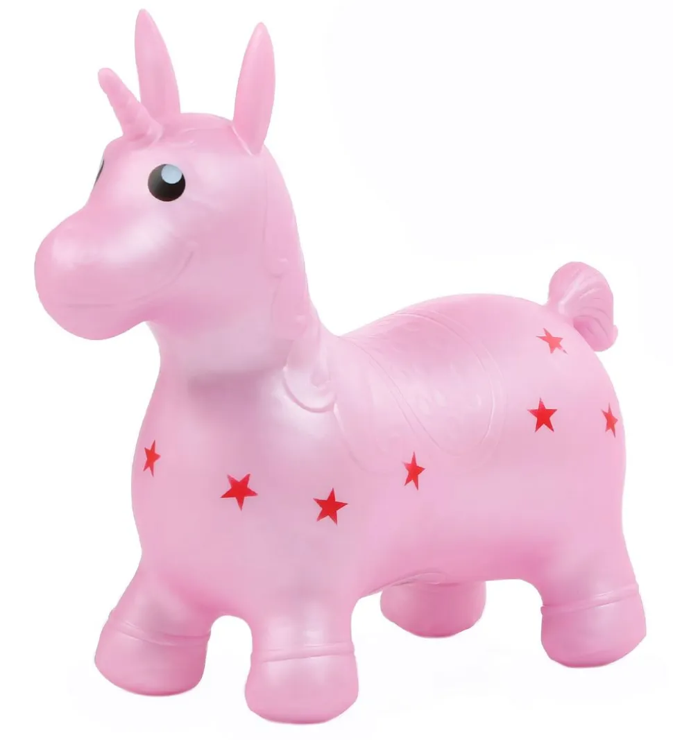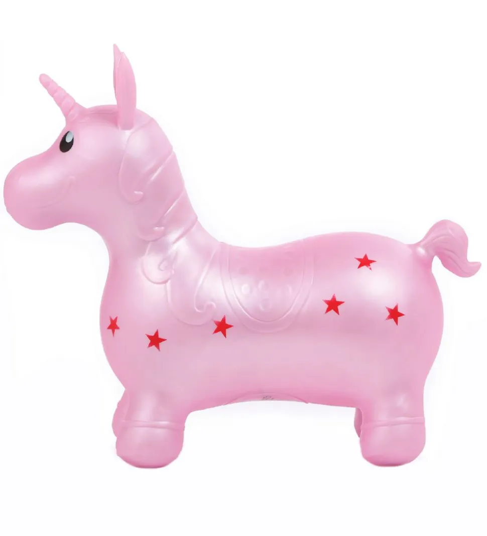 Smuk Ludi hoppedyr formet som en enhjørning i rosa med røde stjerner.