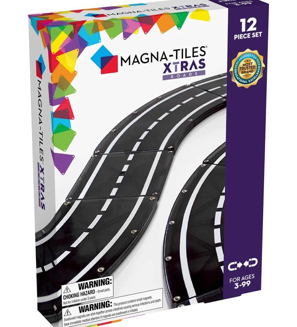 Fint Magna-Tiles magnetsæt bestående af 12 Magna-Tiles vej-elementer til at bygge en bilbane eller udvide et eksisterende Magna-Tiles magnetsæt. Sættet indeholder Magna-Tiles i disse former: