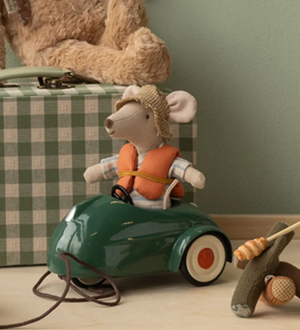 Maileg bilen passer til Mailegs legetøj i størrelse musefamilie og gør familielegen komplet. Bilen har et sæde til musen, og der medfølger en snor, som kan bindes fast til bilen og gøre det muligt for barnet at trække den af sted.