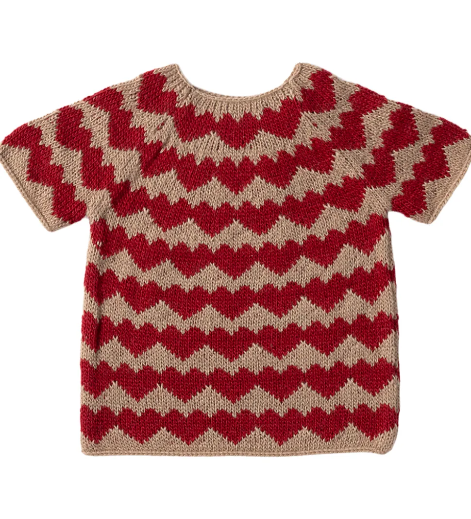 Lækkert Maileg dukketilbehør med korte ærmer i en beige nuance med et flot hjertemønster i rødt.
