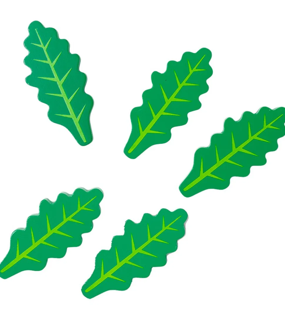 Underholdende MaMaMeMo legemad bestående af fem stykker ruccolasalat.
