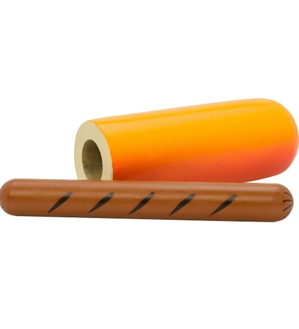 MaMaMeMo legemaden er i træ og er i to dele, brødet og pølsen.
