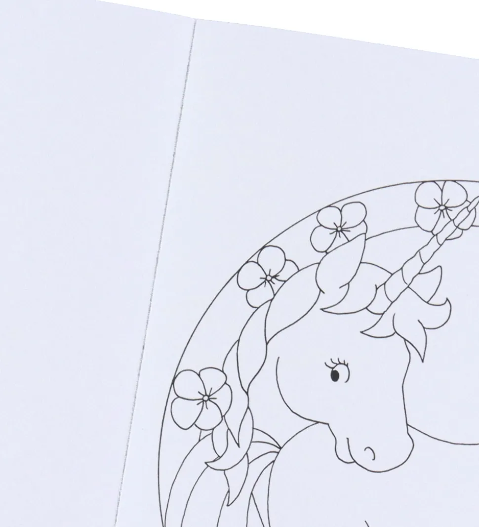 Skøn Mandalas malebog med søde enhjørninger, som ender med at blive farvestrålende kunstværker.