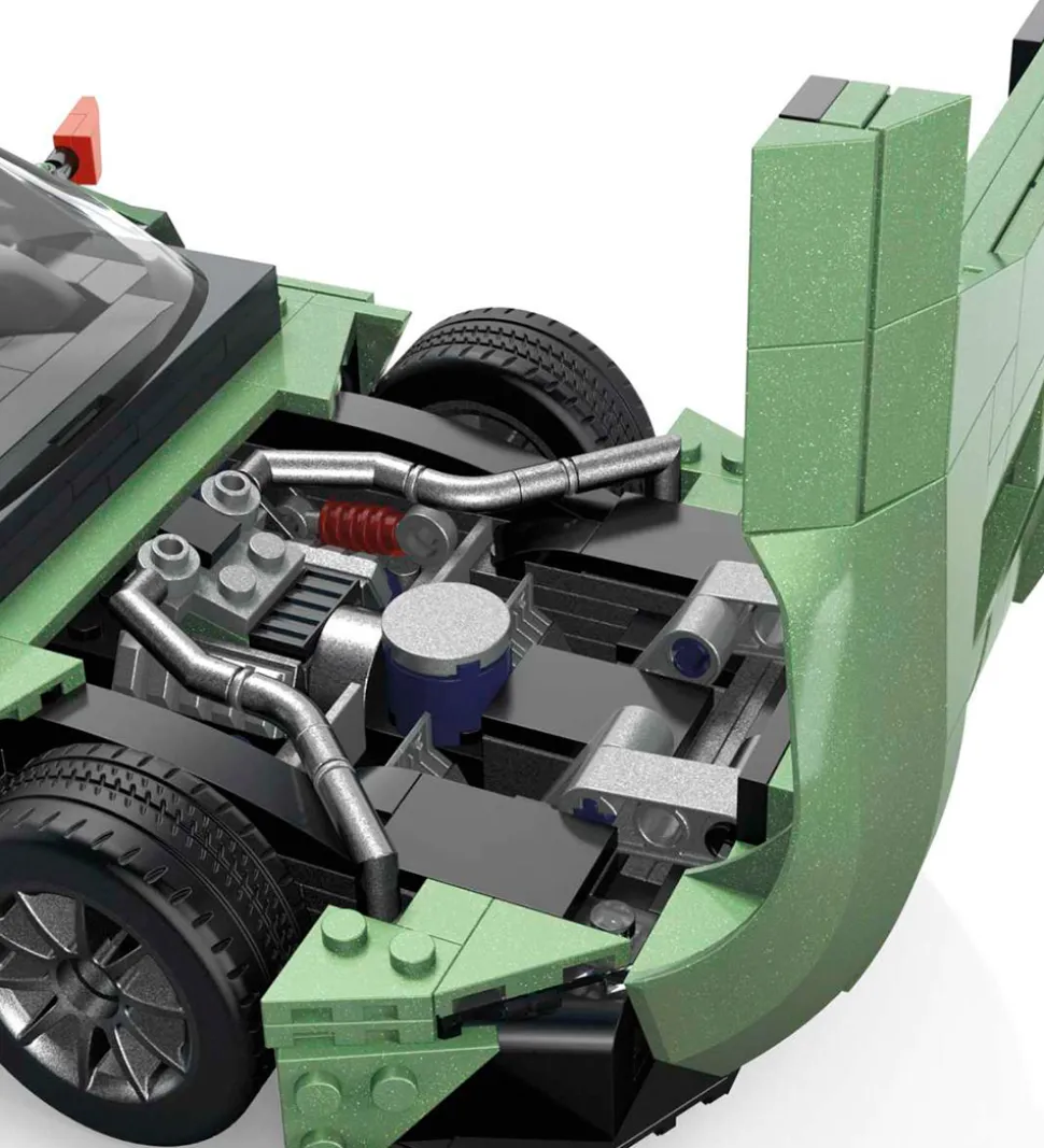MEGA Hot Wheels sættet ligner den ægte bil med et sejt interiør. Den har bevægelige dele, som f.eks. sidedøre, som kan åbnes og en motorhjelm, der kan vippes op.