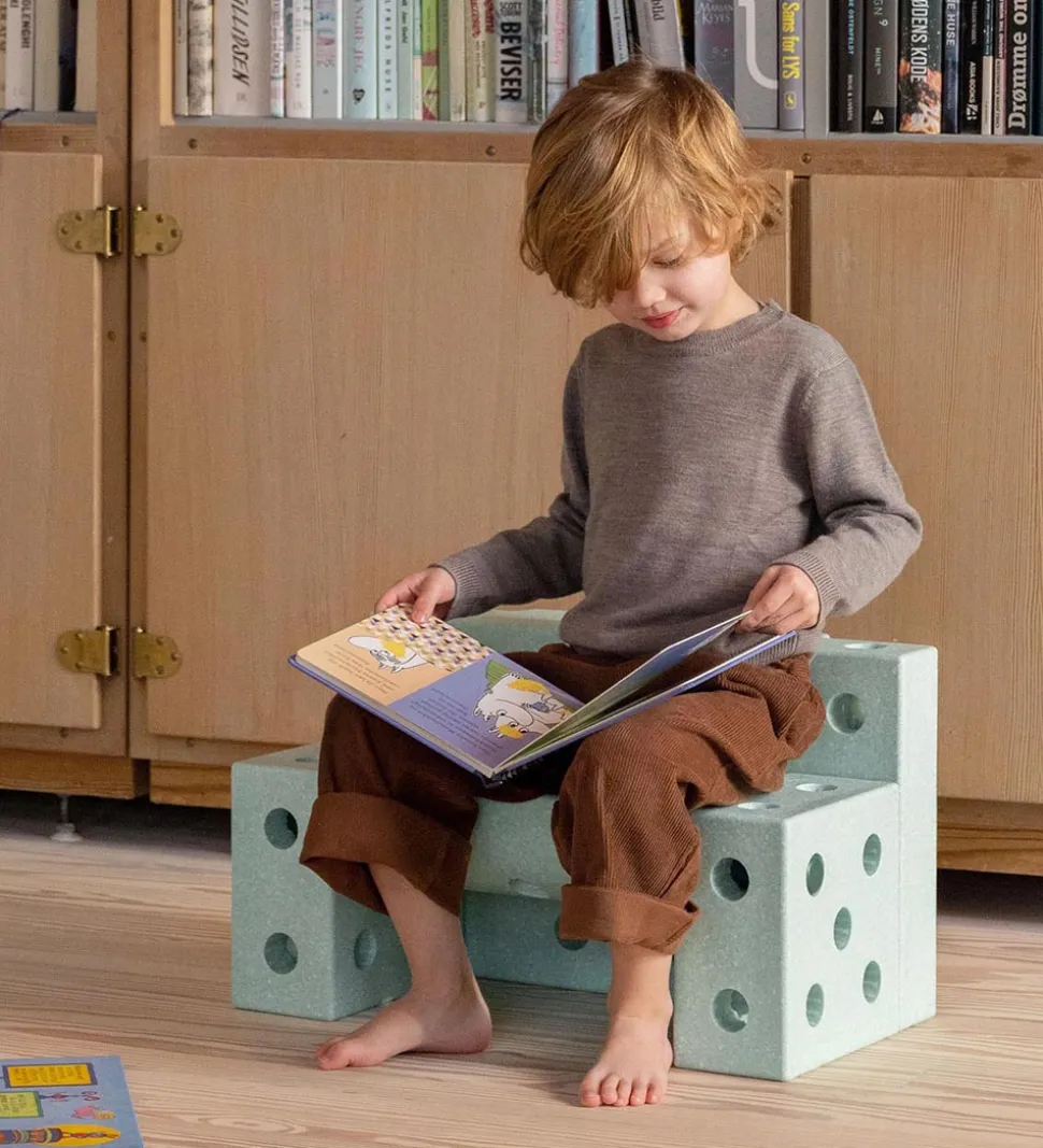 Sættet er lavet af genanvendeligt EPP-skum og fødevaregodkendt ABS. Det kan vaskes med vand og en børste, tages med i bad og endda også komme i opvaskemaskinen.