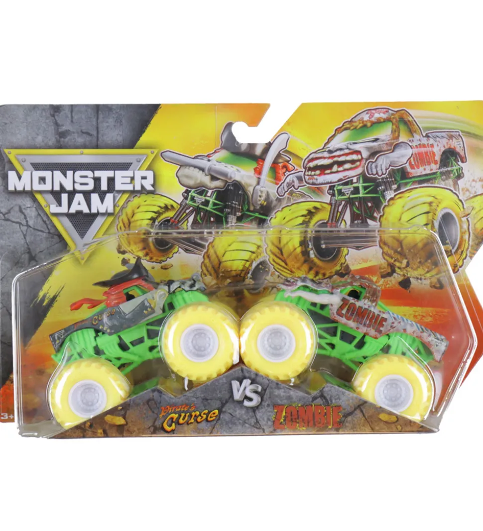 Fantastisk Monster Jam bilsæt solgt i en 2-pak med to monstertrucks i grøn i modellerne Pirate’s Curse og Zombie. Monster Jam bilerne er detaljerede med gule dæk, som giver et unikt og spændende udtryk.