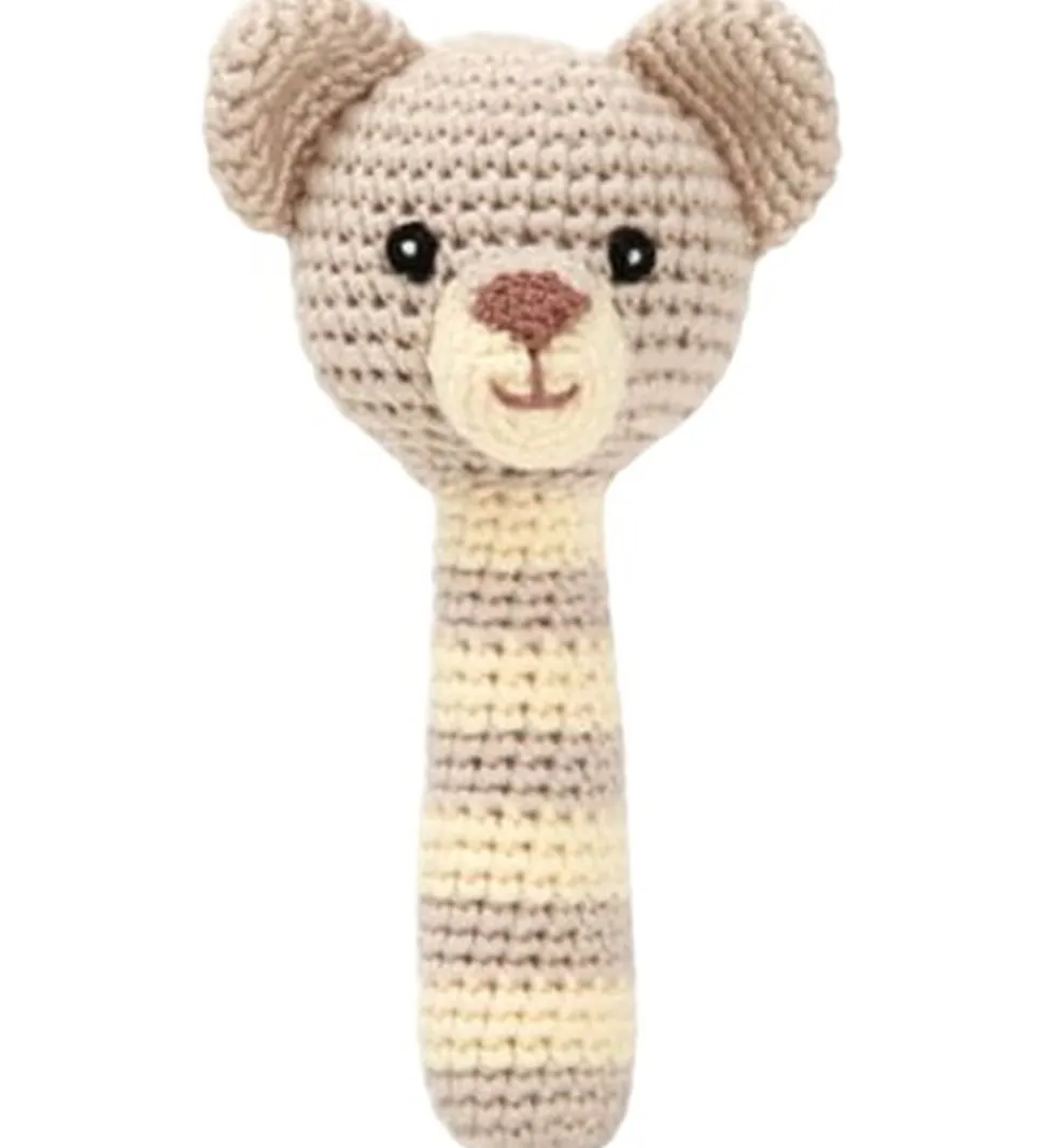 Charmerende NatureZoo rangle formet som en løve med striber i beige og creme nuancer. Det hæklede design giver ranglen en klassisk og tidløs stil.