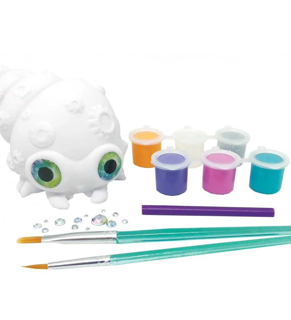 Skøn Nebulous Stars figur i form af det nuttede eremitkrebs-fantasivæsen Lyria, der bare venter på at blive malet med det medfølgende sæt af pensler, akrylmaling og dekorationstilbehør, som rummer: