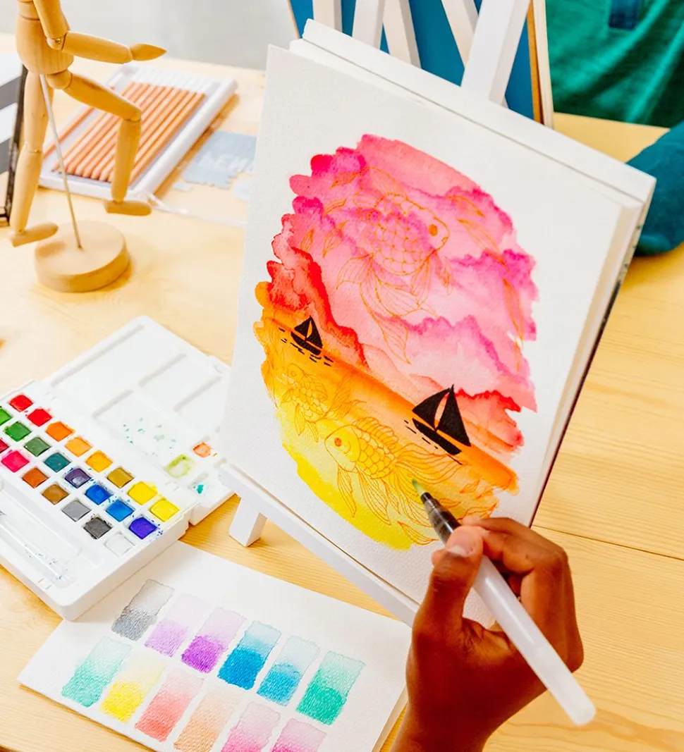 Smukke Ooly vandfarver med 24 flotte farver og to medfølgende pensler.