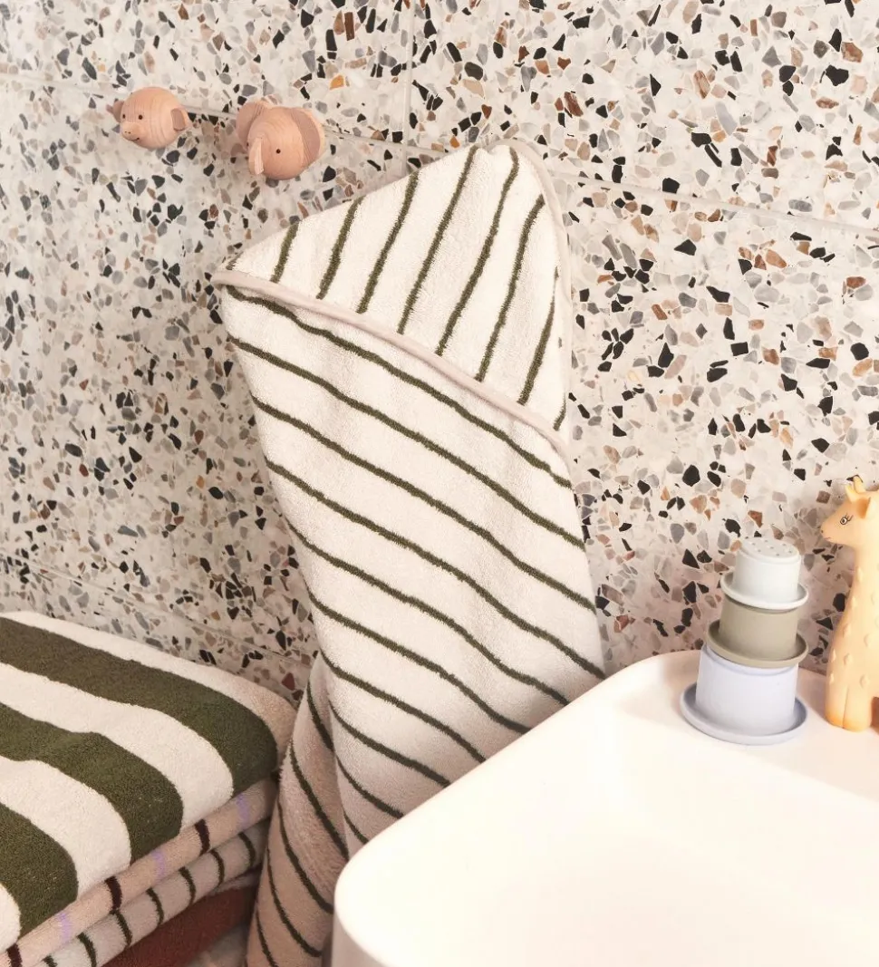 Smart OYOY stabletårn i blå, grønne, brune, gule og rosa nuancer.