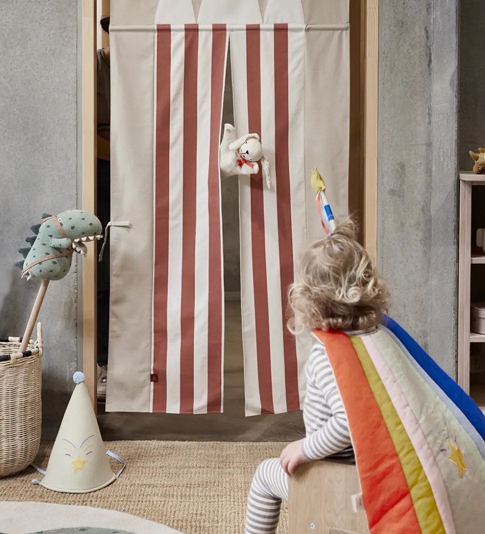OYOY kappen lukkes om halsen med velcro, og på indersiden har den blødt musselin. Kappen er lavet i en vatteret kvalitet, og den er perfekt til små børn og store tryllekunstnere.