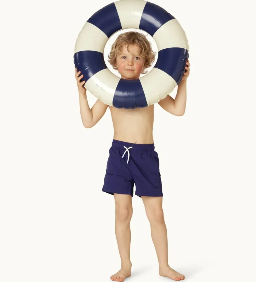 Skøn Petites Pommes badering i et stribet design med cremehvide og navyblå farver.