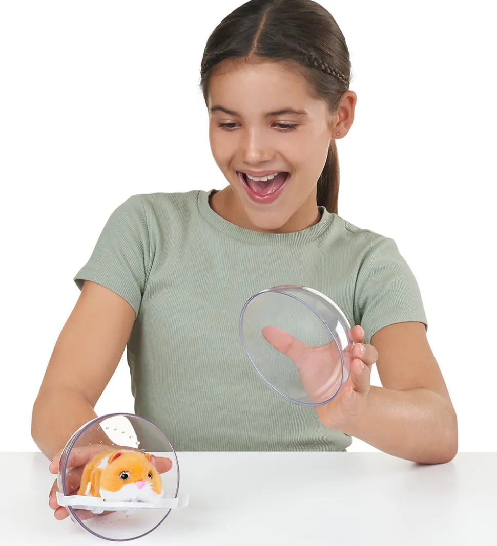 Sød Pets Alive legetøj i form af et hamster i brun og hvid, med store glitrende øjne.