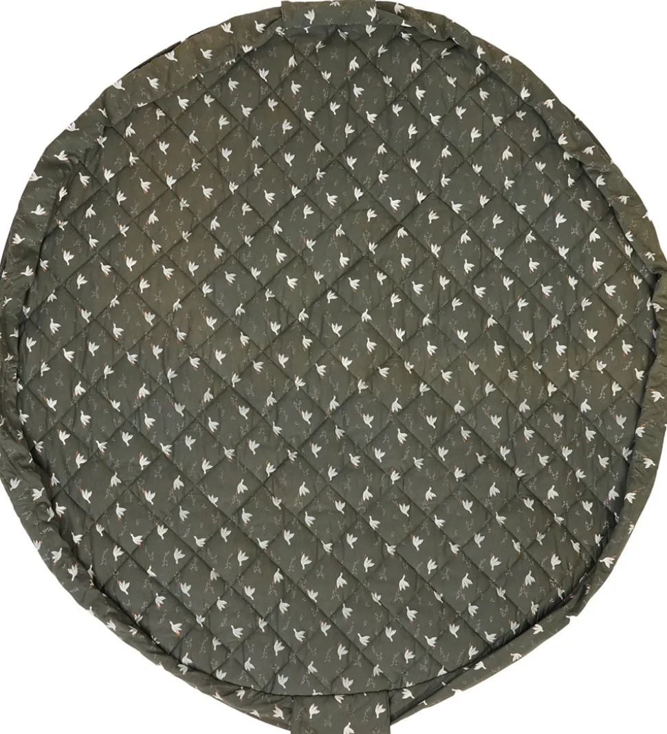 Skønt Play&Go legetøjstæppe i en mørkegrøn farve med et fint allover print af små fugle.