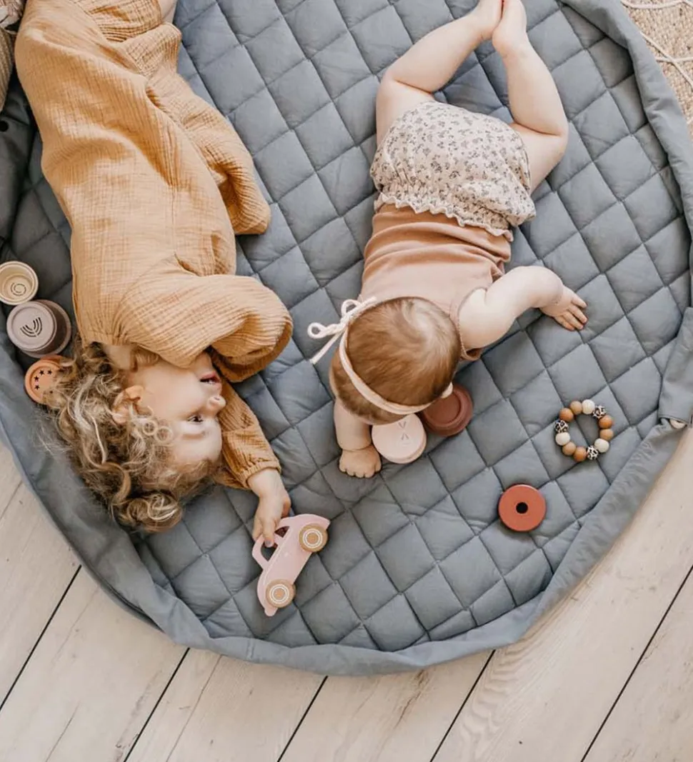 Flot Play&Go legetøjstæppe i ensfarvet støvet blå.