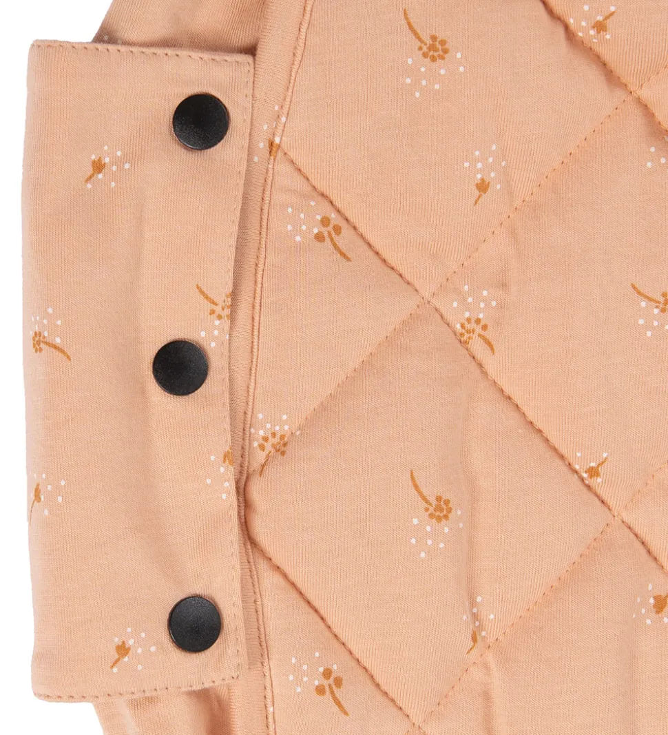 Flot Play&Go legetøjstæppe i rosa med et alloverprint af små, fine blomster og prikker i lysebrun og hvid.