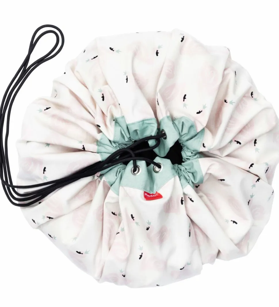 Play&Go legetøjstæppet er et stort cirkelformet stykke stof med en løbegang hele vejen rundt med en sort snor, så man kan snøre tæppet sammen til en pose. I posen kan man opbevare sit legetøj, og når børnene synes, at legetøjet skal med ind i stuen, kan posen åbnes og legetæppet folder sig ud. Bagefter er det hurtigt og nemt at rydde op og lægge på plads.