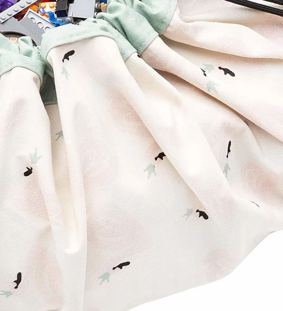 Smart Play&Go legetøjstæppe i cremefarvet kanvas med flotte svaner på ydersiden.