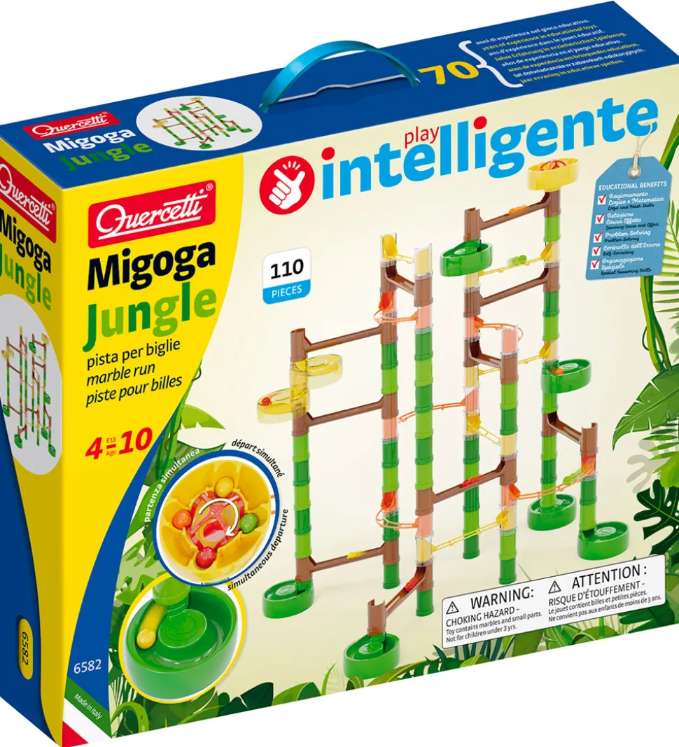 Kuglebanen er perfekt til byggeglade børn og stimulerer de visuel-rumlige evner, årsag/virkning-princippet og problemløsning. Quercetti udvikler legetøj ud fra STEAM-læring, som indebærer videnskab, teknologi, ingeniørarbejde, kunst og matematik.