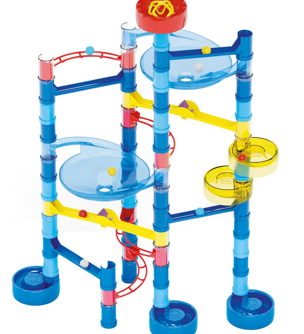 Kuglebanen er perfekt til byggeglade børn og stimulerer de visuel-rumlige evner, årsag/virkning-princippet og problemløsning. Quercetti udvikler legetøj ud fra STEAM-læring, som indebærer videnskab, teknologi, ingeniørarbejde, kunst og matematik.