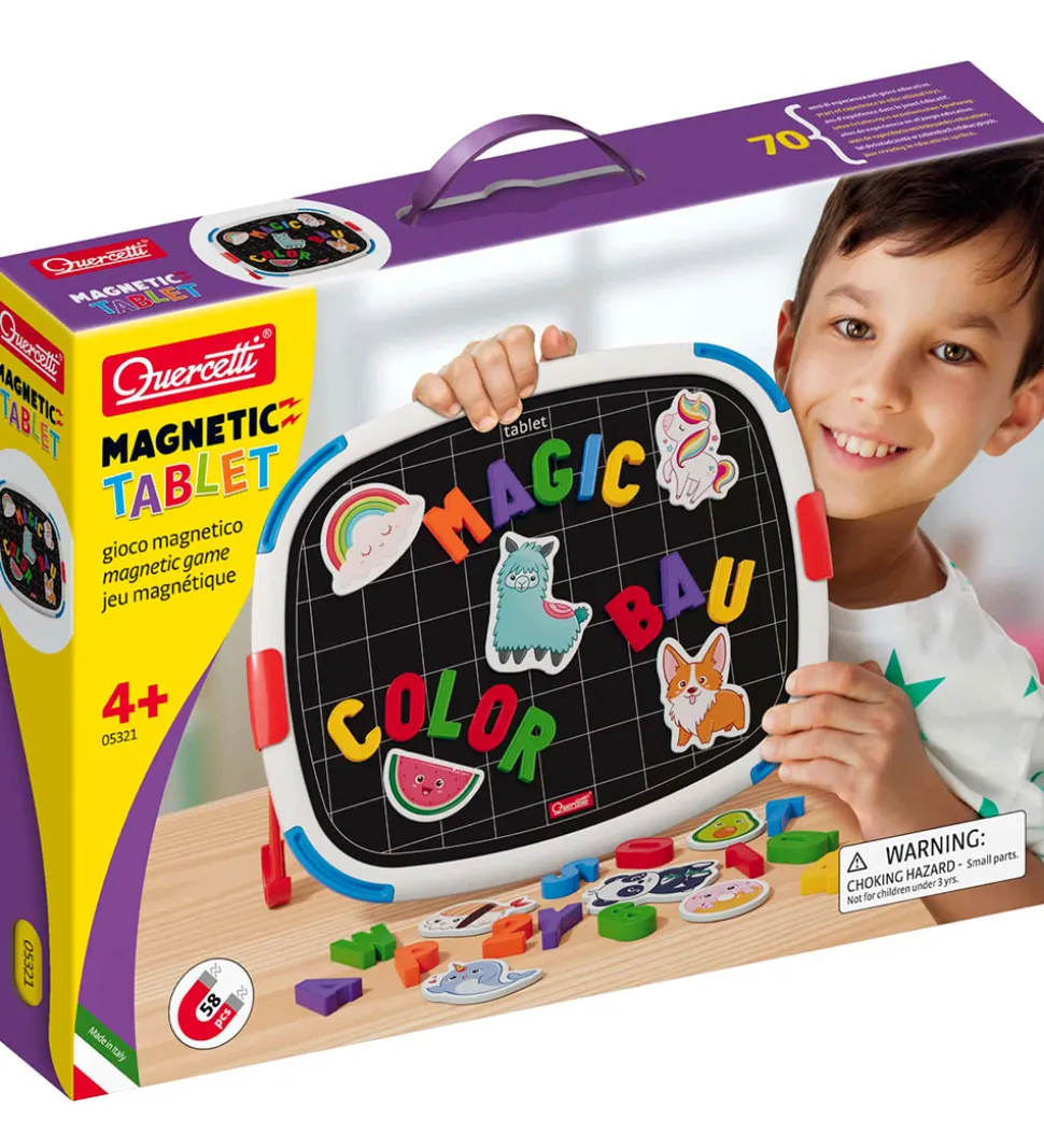 Den magnetiske tavle er perfekt til førskolebarnet eller til barnet, der lige er startet i skole. Quercetti udvikler legetøj ud fra STEAM-læring, som indebærer videnskab, teknologi, ingeniørarbejde, kunst og matematik.