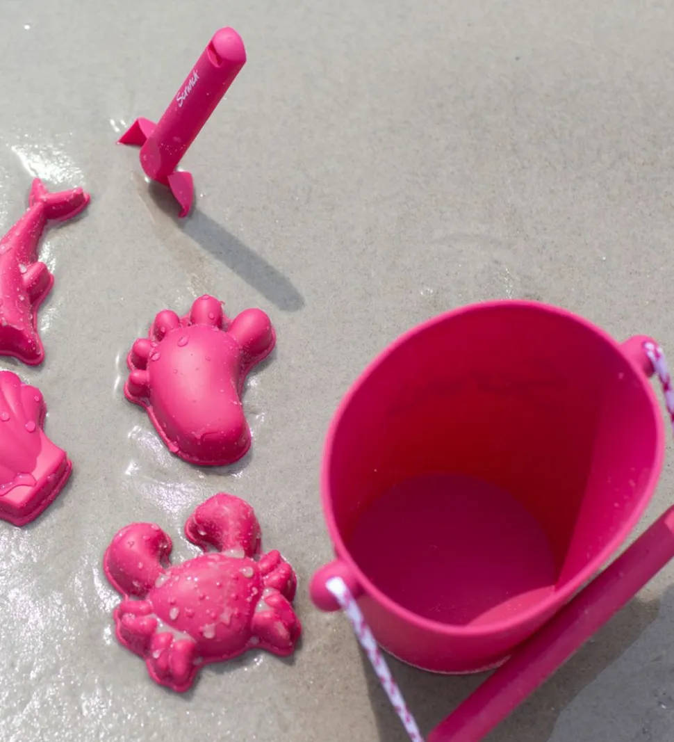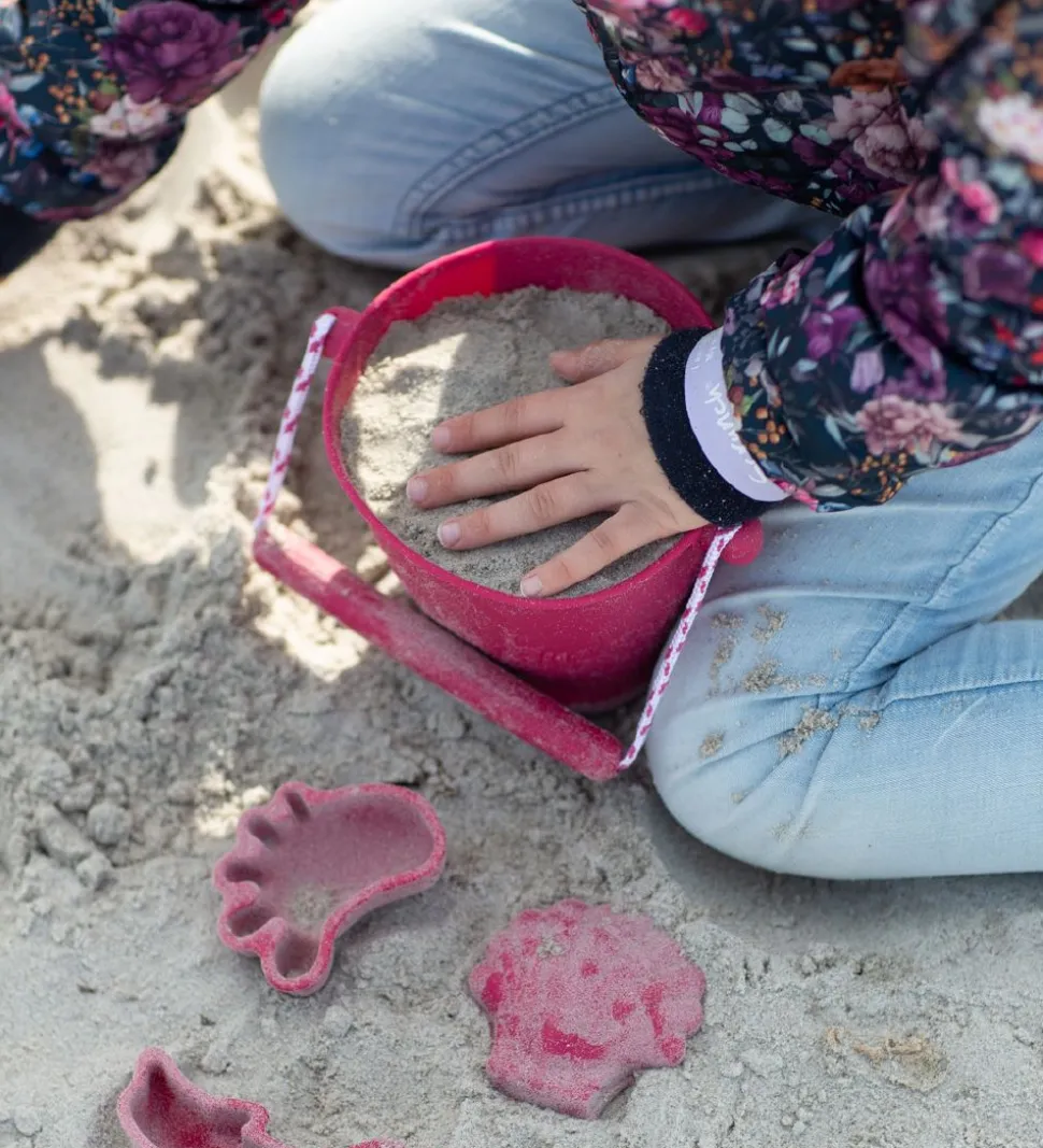 Scrunch spanden kan rumme 1,5 liter. Den er lavet af fleksibelt, blødt og foldbart silikone, så den er let at have med i strandtasken eller kufferten. Spanden har et praktisk, skridsikkert håndtag der passer perfekt ind i barnets hånd.