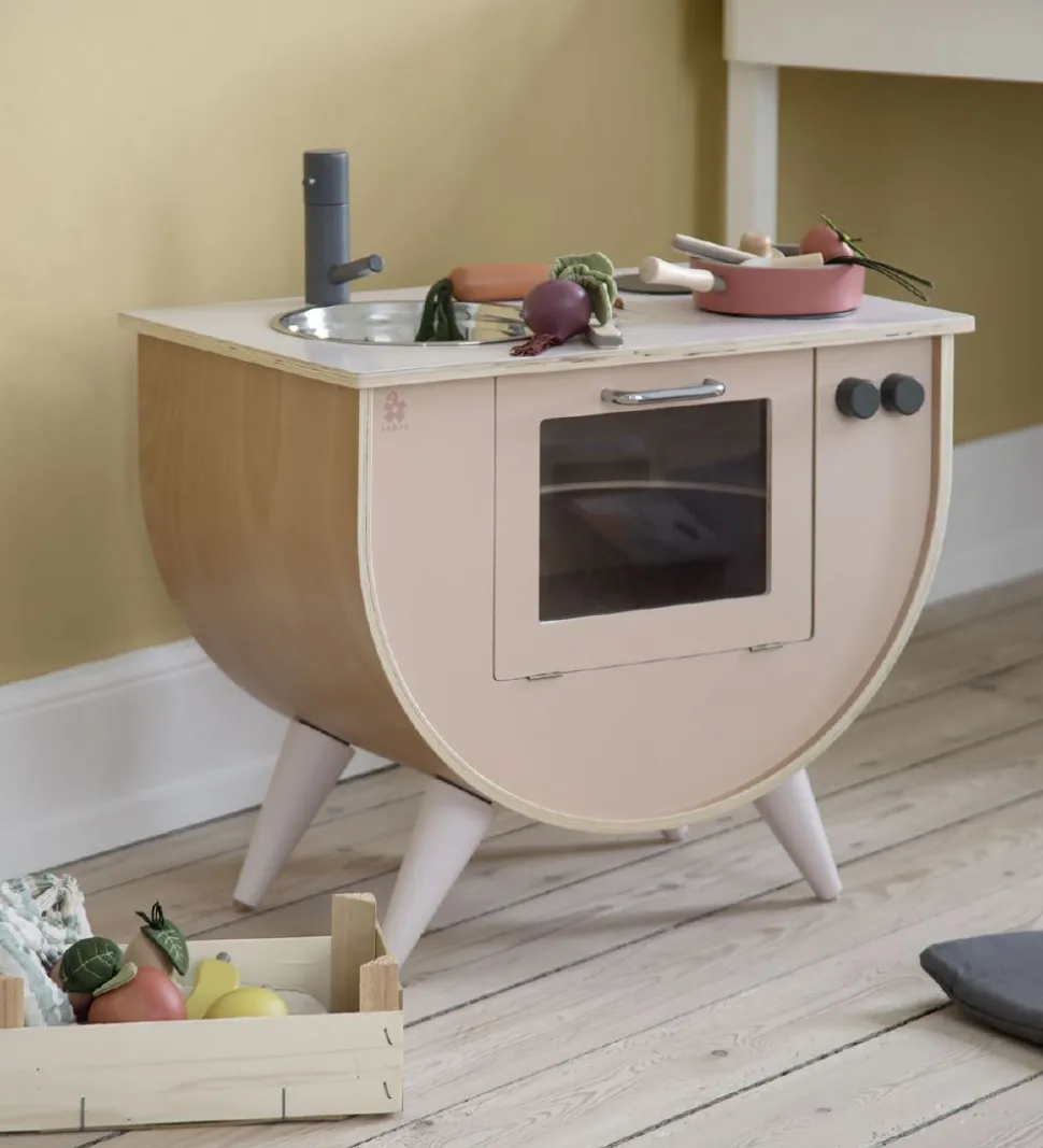 Sebra frugterne er lavet i træ med afrundede kanter, og de er behandlede med giftfri maling og lak. Flere af dem har fine detaljer i stof, som forestiller deres blade. Frugterne vil passe perfekt ind i et legekøkken eller til f.eks. at lege picnic, og grøntsagerne er nemme at transportere med det fine indkøbsnet.
