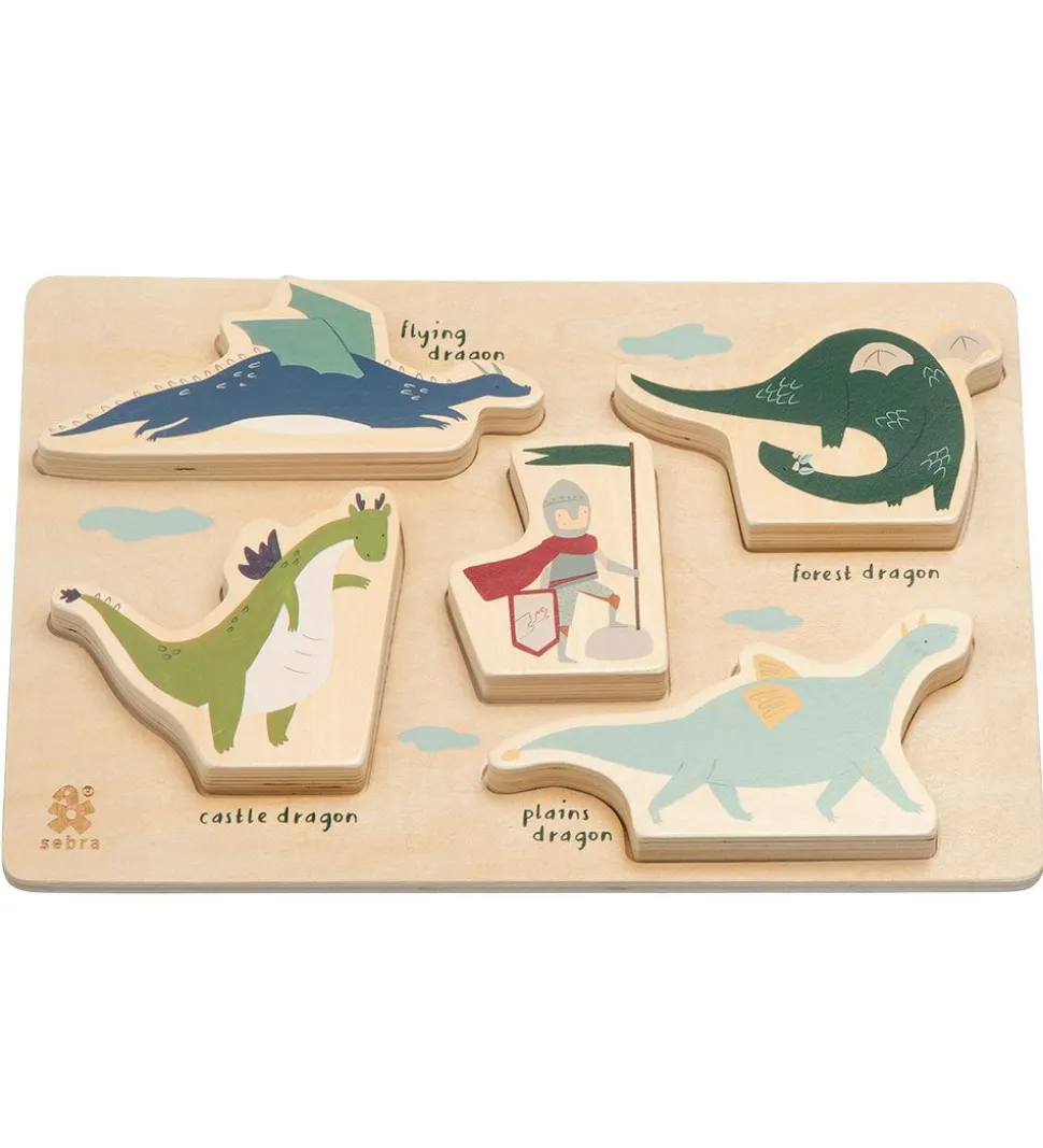 Sejt Sebra puslespil med illustrationer af en ridder og forskellige drager.