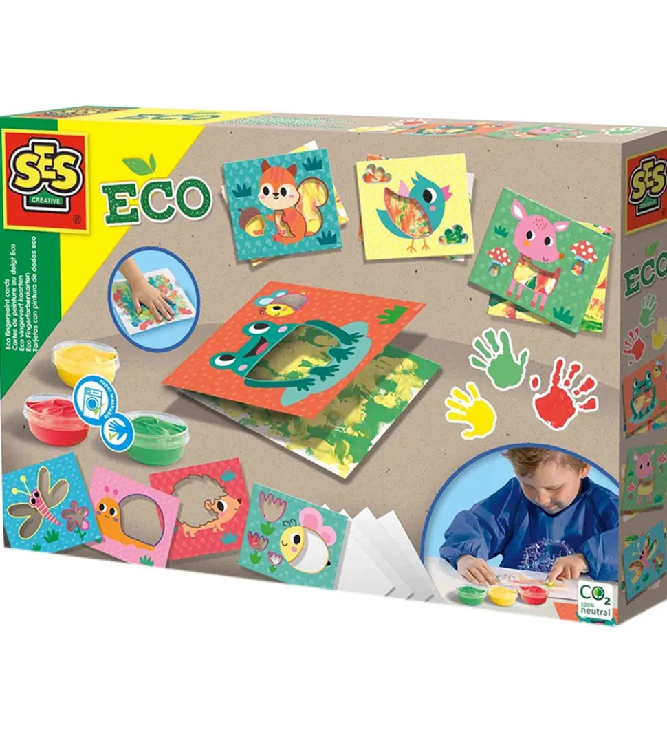 SES Creative fingermalingen er perfekt til de små kreative børn, da det lægger op til timevis af kreativitet og sjov. De små kan frit male løs på det inkluderede papir, derefter kan man placere et af dyrekortene over det våde kunstværk, hvilket skaber et endnu flottere resultat. Malingen er let at få af tøjet hvis det spildes.