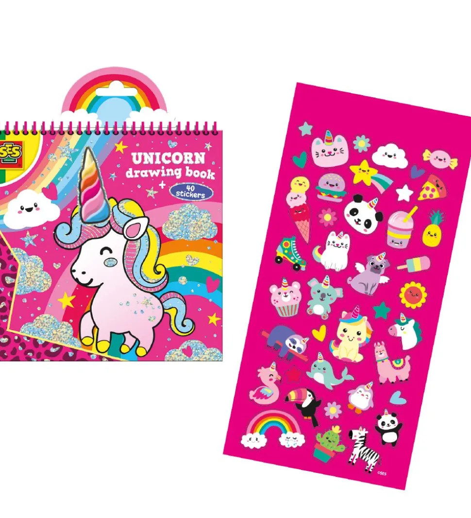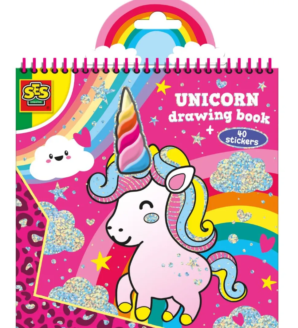 SES Creative malebogen har et horn i regnbuefarver, som matcher med en del af alle motiverne.