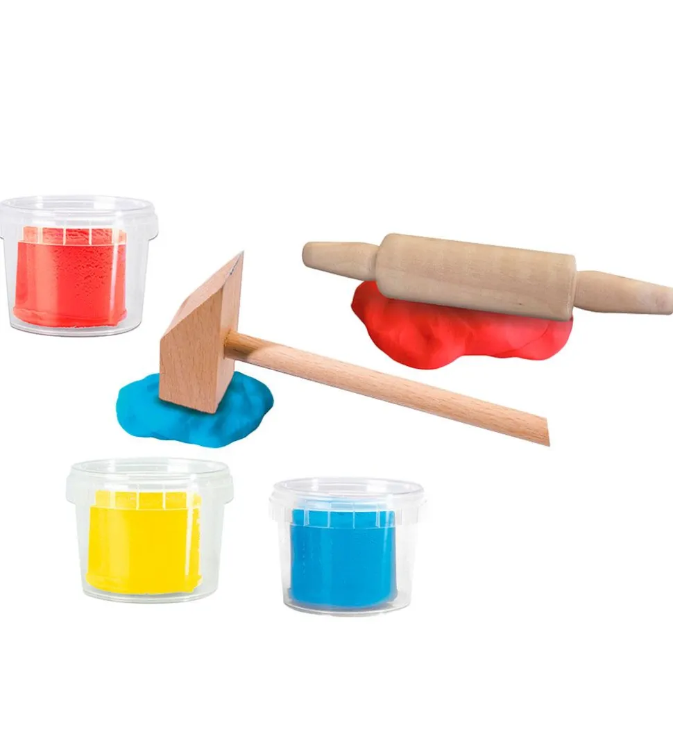 SES Creative sættet er sjovt for de helt små, som skal lege med modellervoks for første gang. Barnet kan lave forskellige former ved at hamre og rulle det fladt.