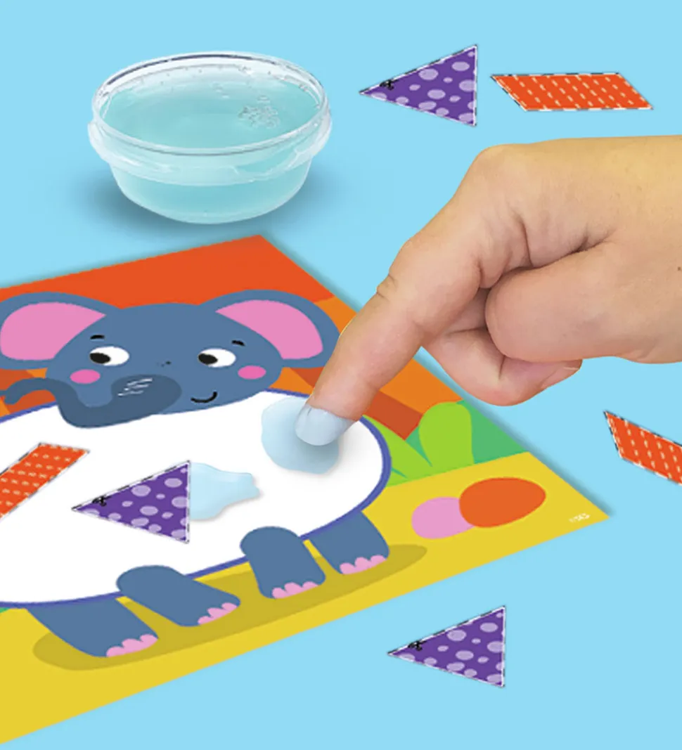 Dette kreative sæt fra SES Creative giver børn mulighed for at udforske deres fantasi og skabe sjove billeder med farverige former.