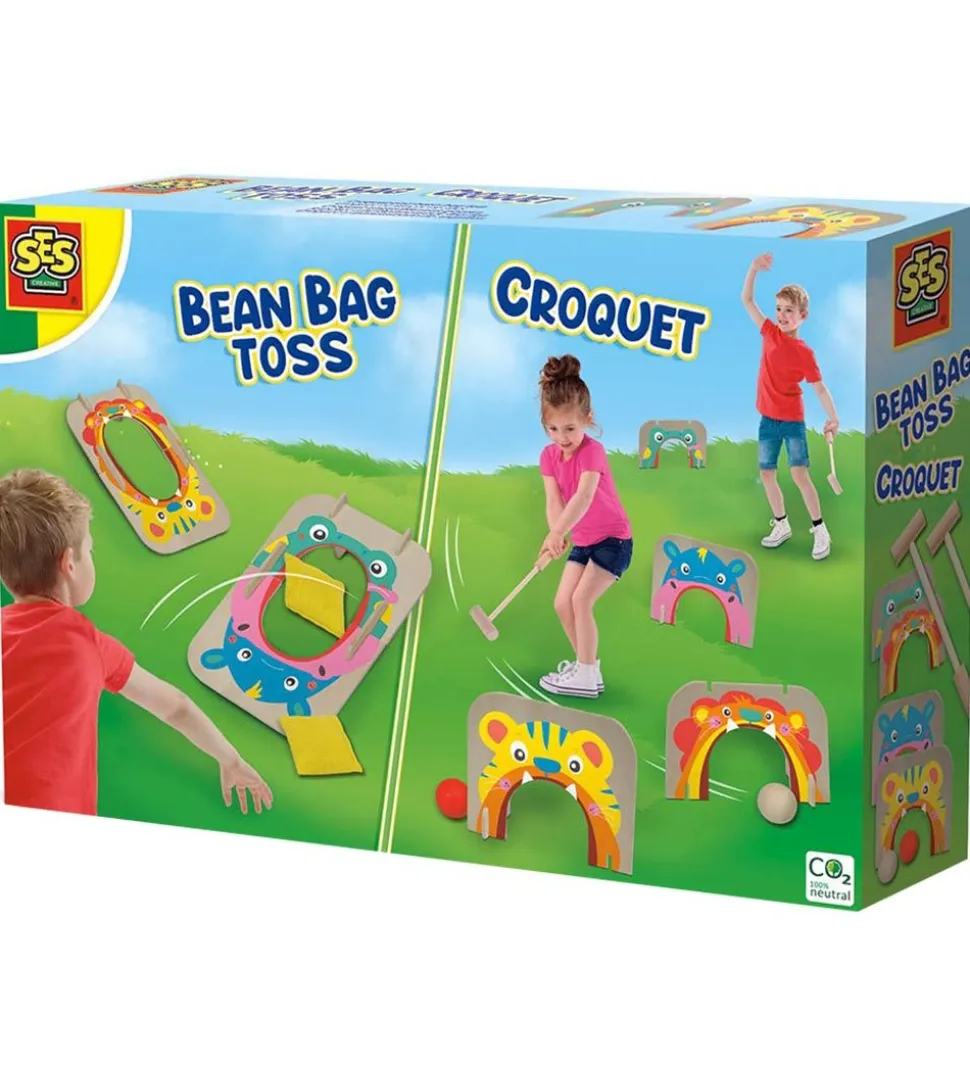 Sjove SES Creative udendørsspil bestående af kroket og bønneposekast.