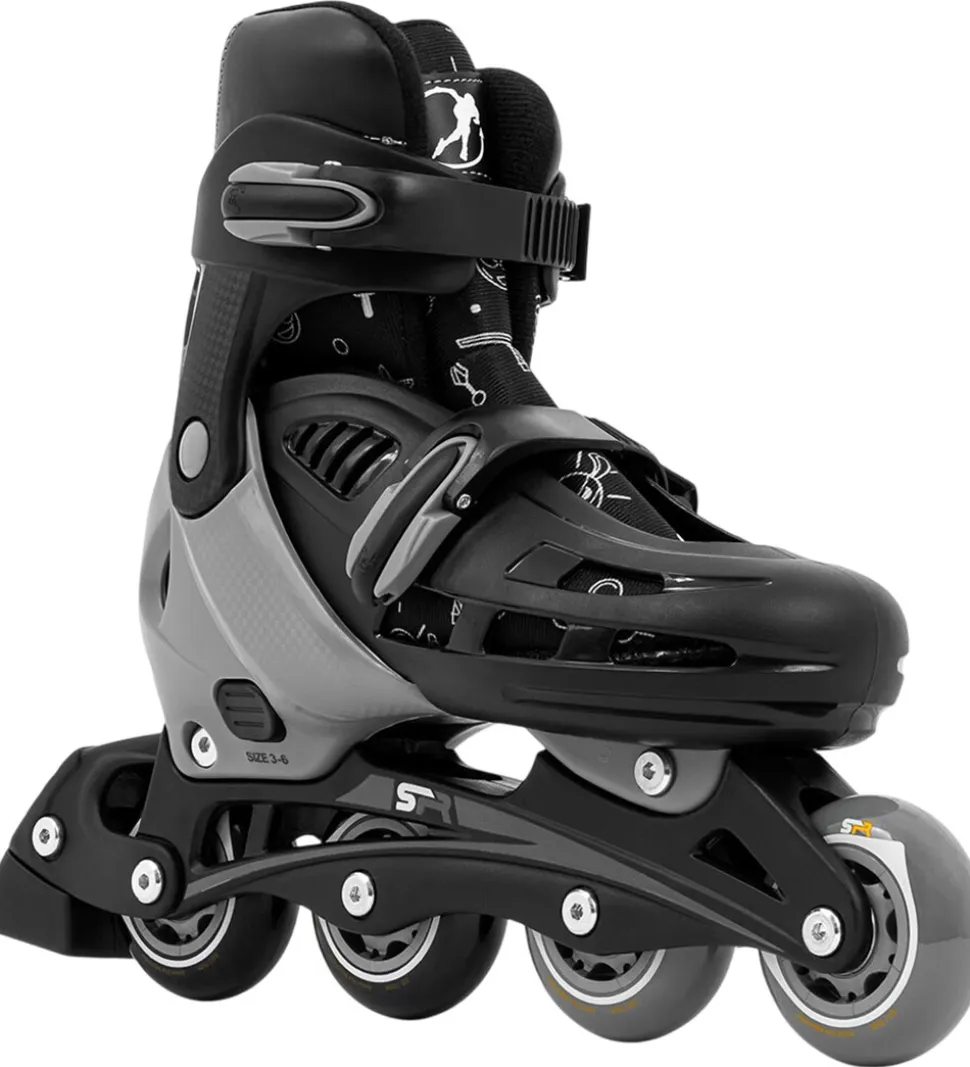 Smarte SFR rulleskøjter i sort og mørkegrå med seje ninja-print.