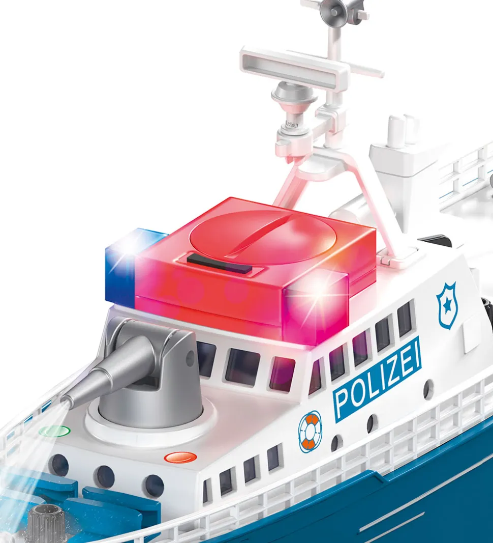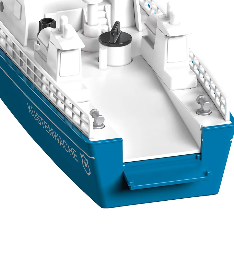 Siku legetøjet har forskellige bevægelige dele, som barnet kan udforske og lege med. Legetøjet kan flyde på vandet og spøjter vand ud af kanonen, og så har den sjove lyd- og lyseffekter. Legetøjet er sjovt, og det er med til at udvikle barnets motorik og kreativitet.