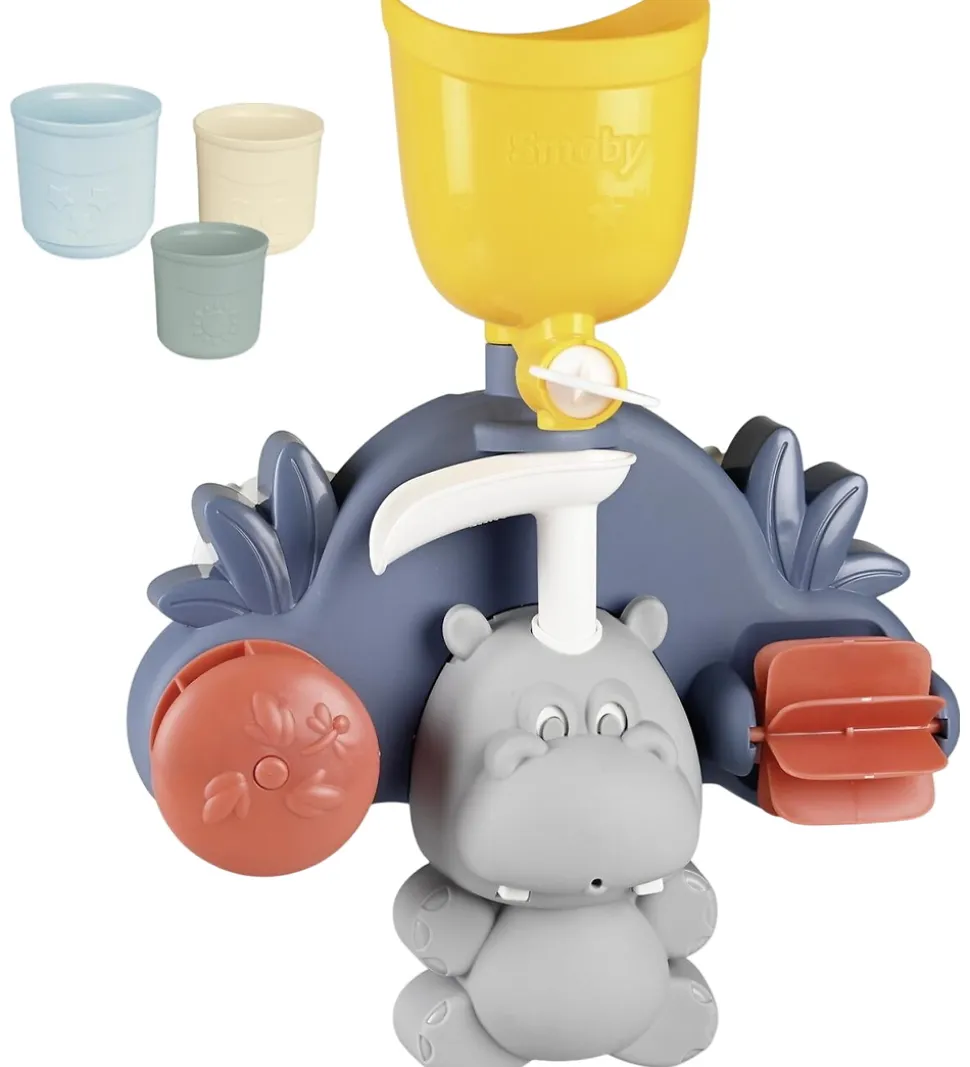Fint Smoby badelegetøj der forestiller en flodhest med gule, blå og røde elementer. Smoby designet er både sjovt og praktisk med en sjov mekanisme til at hælde vand i. Perfekt til badetid.