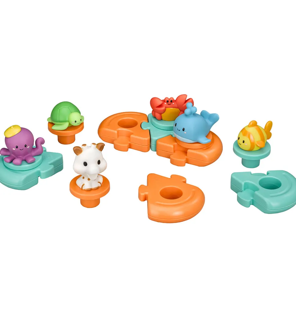 Sophie la Girafe badelegetøjet er med til at styrke barnets motoriske færdigheder, koncentration og logik.