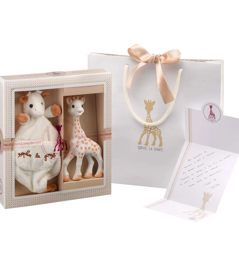 Sophie la Girafe gaveæsken er perfekt som en fin gave til det nyfødte barn, og kommer med en flot gavepose og et kort.