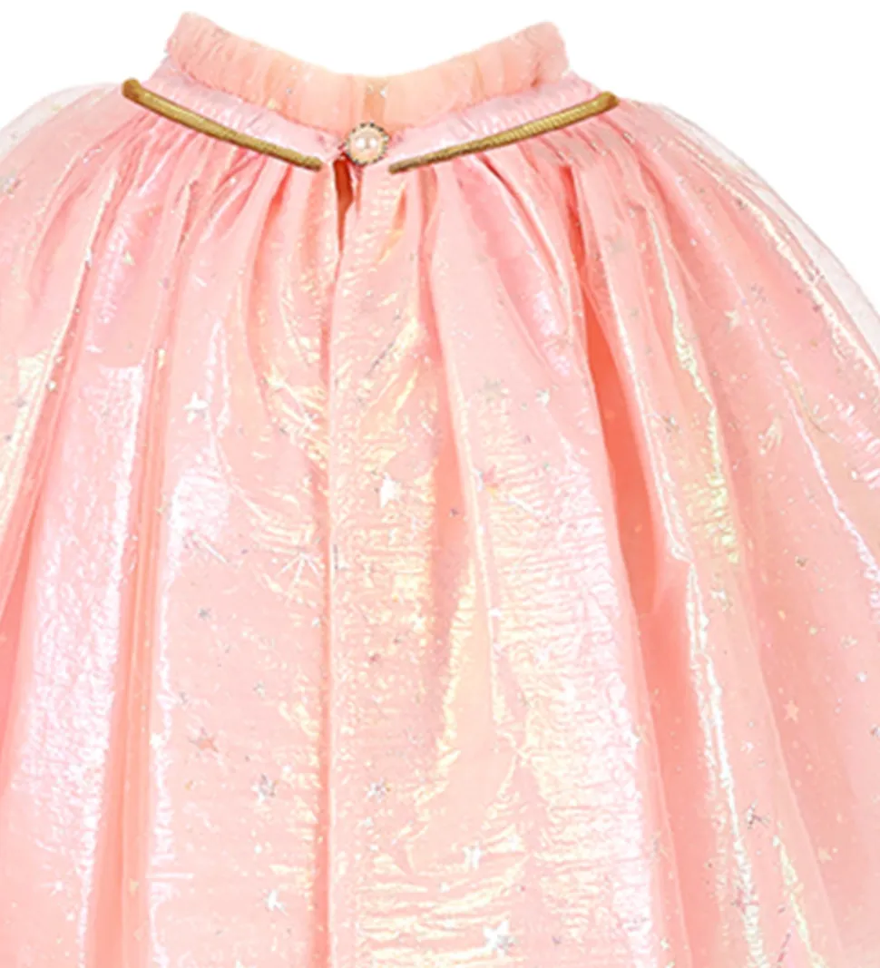 Elegant Souza udklædning i form af en rosa kappe. Kappen består af et lag tekstil inderst med holografisk effekt og et lag tyl yderst med holografisk print af stjerner. Kappen lukkes omkring halsen med en trykknap. Ideel til fantasifulde stunder.