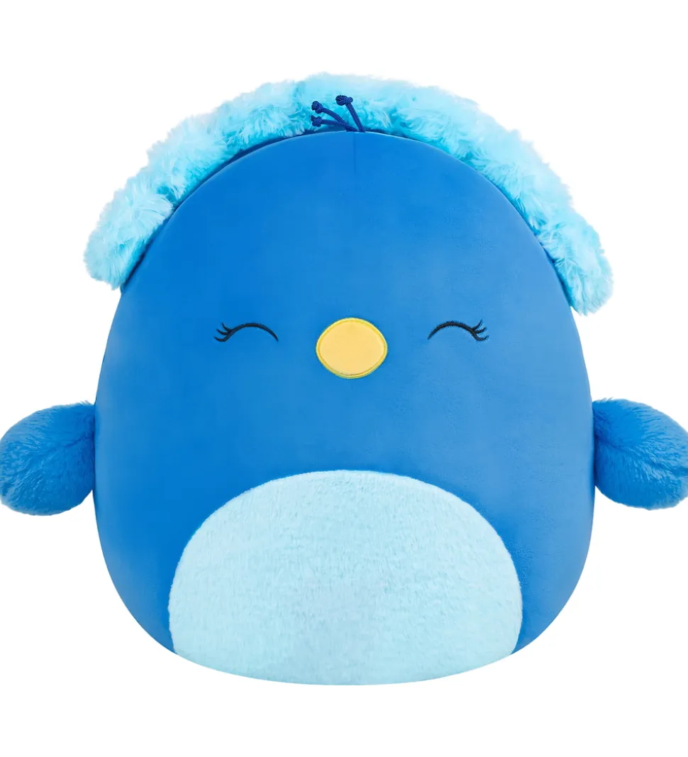 Sjov Squishmallows bamse i form af den blå påfugl Priscilla.