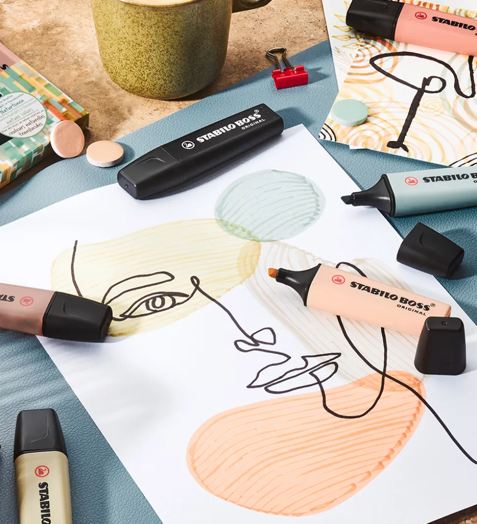 Stabilo overstregningstuscherne bruges til at markere i tekst og farvelægge større områder. Tuscherne har en smart spids, som kan tegne i 2 bredder; 2 og 5 mm. Overstregningstuscherne kan klare 4 timer uden låg på, uden de tørrer ud, og blækken er vandbaseret.