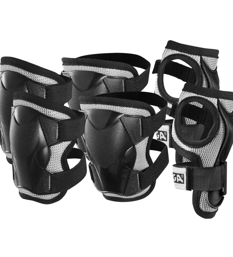 Stiga beskyttelsessættet fastgøres ved hjælp af elastikstropper med praktiske velcrolukninger. Sættet beskytter de områder på kroppen, der er udsatte under en tur på rulleskøjter, løbehjul, skateboard, løbecykel og andet. Beskyttelsessættet forhindrer ikke nødvendigvis skader, men det afdæmper de slag, som barnets krop kan få, hvis det falder.