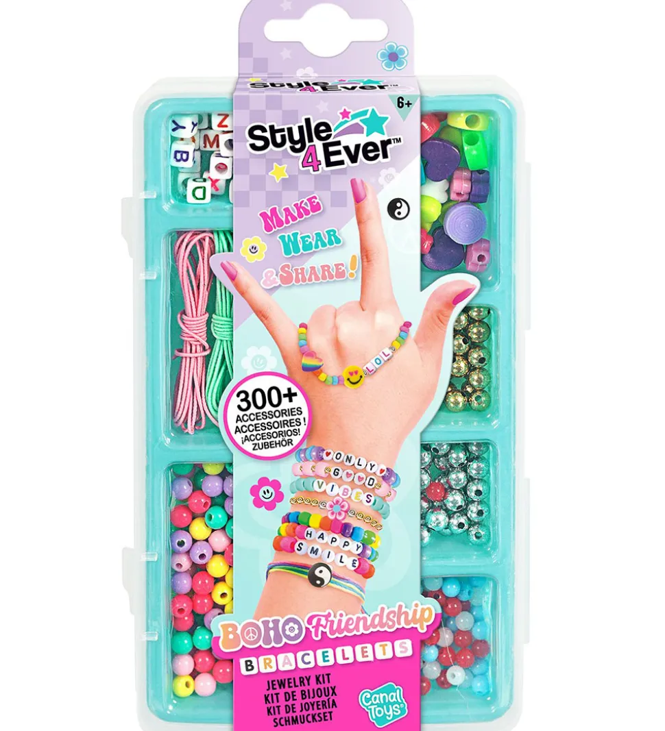 Sejt Style 4 Ever kreasæt med over 300 farverige perler, bogstaver og fine motiver til at lave sit eget armbånd. Sættet indeholder diverse dekorative elementer, hvilket gør det sjovt at skabe unikke venindearmbånd. Perfekt til kreative stunder.