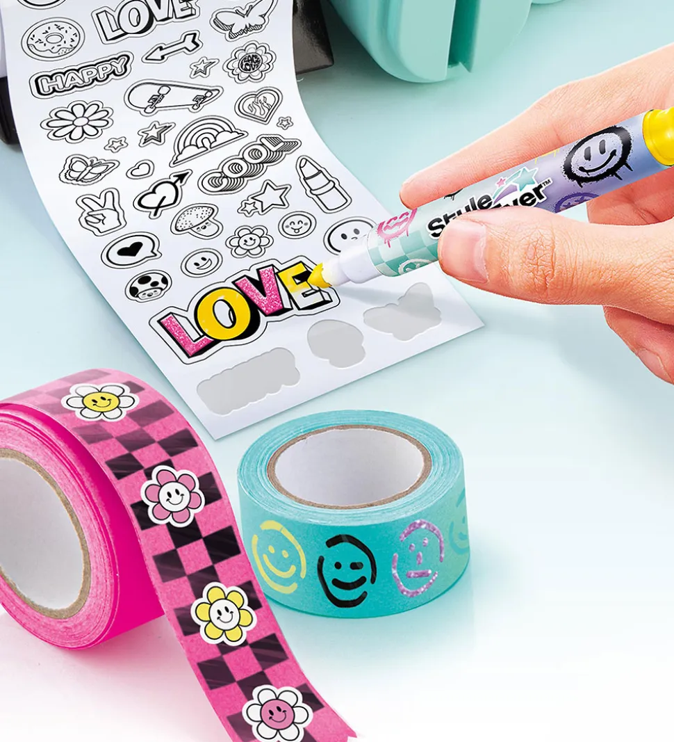 Style 4 Ever Scrapbooking-stationen har holdere og opbevaringsplads til de flotte ting, som man kan bruge til at udsmykke en scrapbog eller notesbog. Man kan indpræge tekst og figurer i papir, farvelægge klistermærker og dekorere tape, så man kan sætte sit helt eget præg på den medfølgende notesbog.