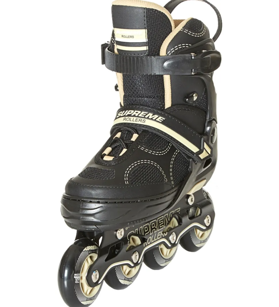 Seje Supreme rulleskøjter i sort med guldfarvede detaljer og guldfarvet for.